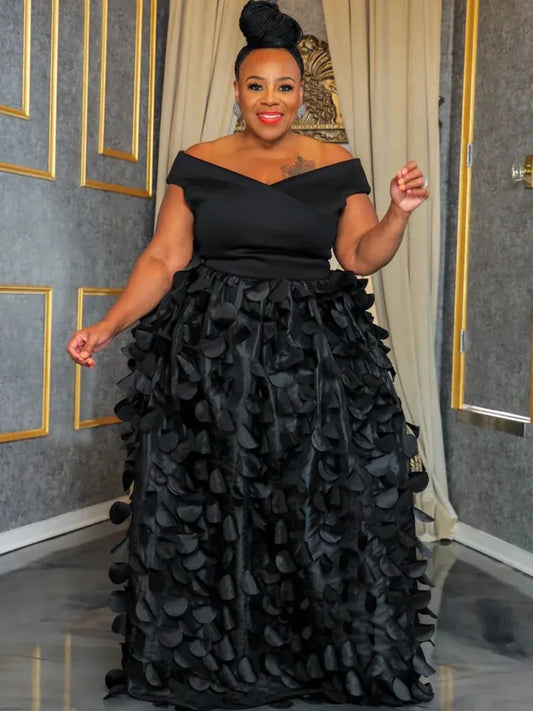 XL-5XL Plus Size Elegant Maxi Dress 2024 Autumn Women Bohemian Dress Casual Short Sleeve Robe Off Shoulder Dress Oversize