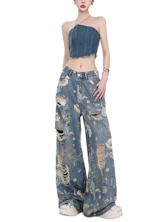 Women's Wide Jeans Ladies Vintage Casual American Baggy Jeans Y2k Woman Clothing Women's Denim Pants Shoujo Girl Style Jean Pant