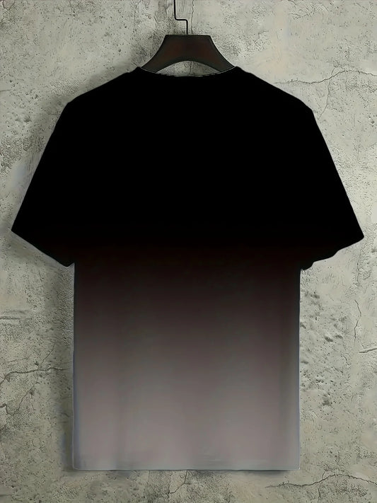 Alphabet Print Gradient Crew Neck Short Sleeve T-shirt For Men, Casual Summer T-Shirt For Daily Wear And Vacation Resorts