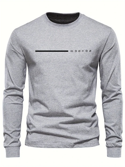 Men's Spring And Fall Fashion Casual Long-sleeved T-shirt Loose PARIS Letters Printed Pullover Round Neck Long Sleeve Sweatshirt