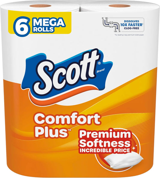 Scott ComfortPlus Toilet Paper, 12 Double Rolls, 231 Sheets per Roll, Septic-Safe, 1-Ply Toilet Tissue