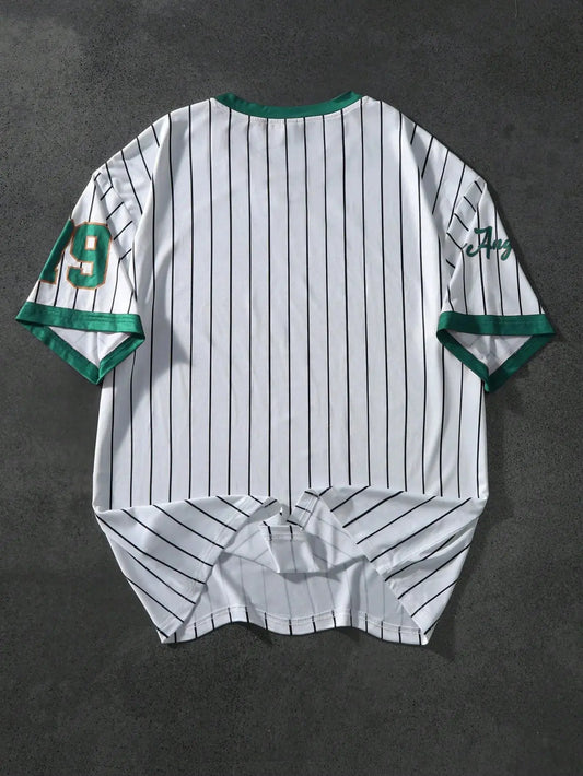 2025 summer new V-neck T-shirt Men's sports printed T-shirt V-neck short-sleeved T-shirt retro baseball chic