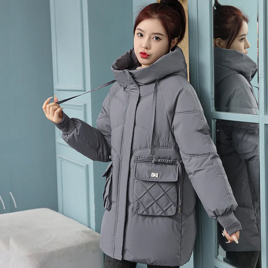 Women Korean Cotton Parkas Hooded Winter Oversize Coat Thick Warm Loose Puffer Jacket Female Solid Fashion Zipper Outwear