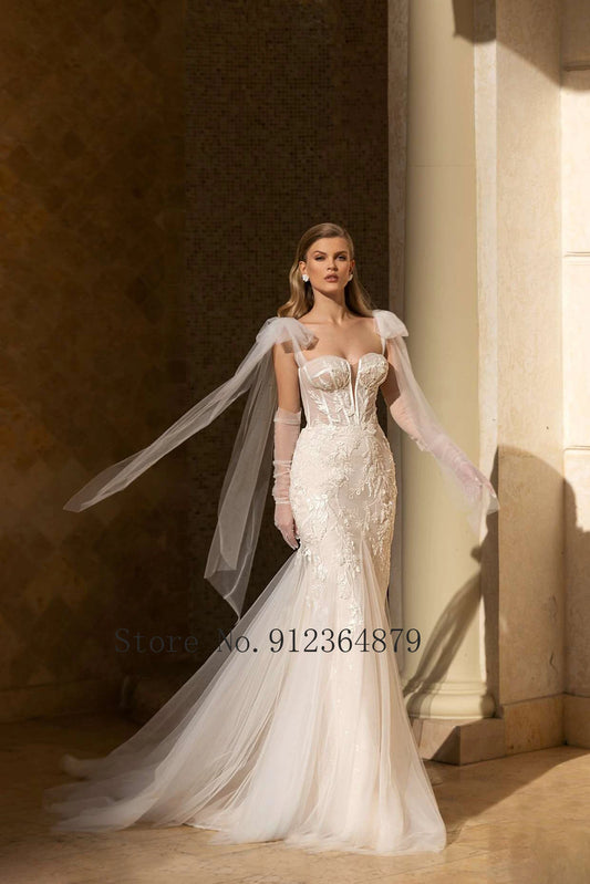 Newest Wedding Dress Mermaid Lace Sweetheart Neck Customized Chapel Train Off The Shoulder Sleeves Bride Gown Vestidos De Novias