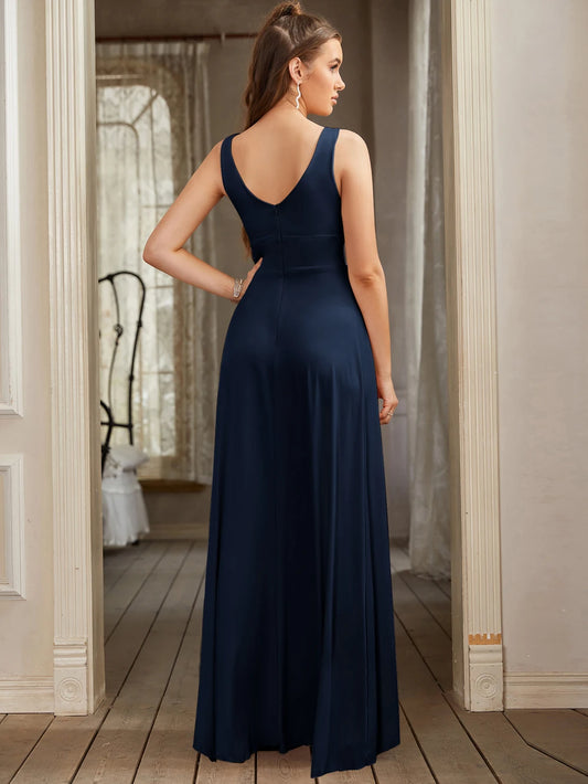 Women Evening Dresses 2025 Sister Group Sexy Split V Neck Backless Sleeveless Formal Wedding Party Prom Gowns Bridesmaid Vestido