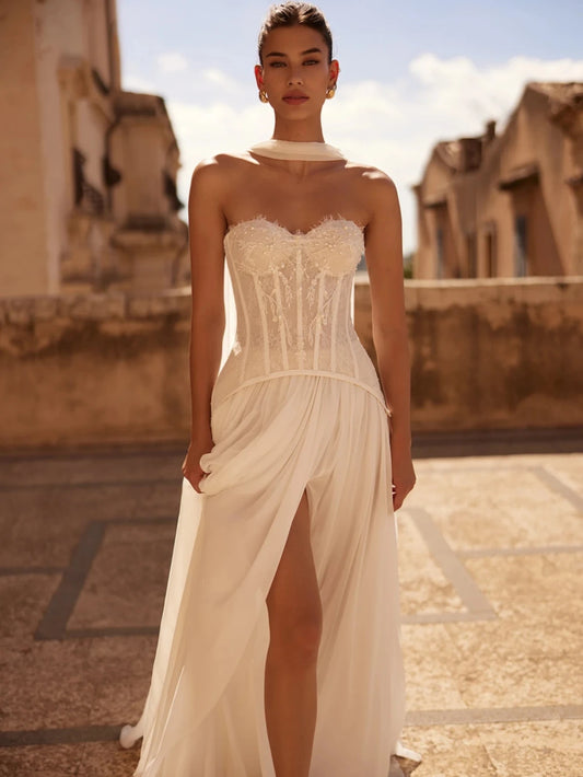 With Corset Beaded Lace Long Wedding Dress Romantic Sweetheart Neck Bridal Gown Customized Sexy High Slit Dresses For Bride