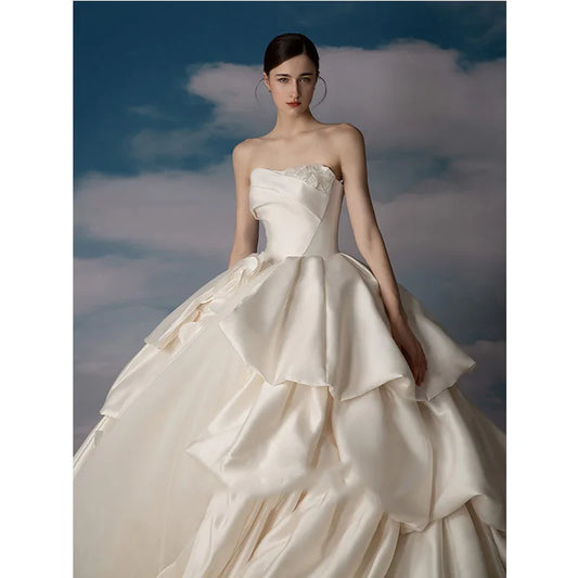 New Bride Simple Main Wedding Dress Senior Sense Strapless Dress Elegant One Line Shoulder Banquet Wedding Dresses