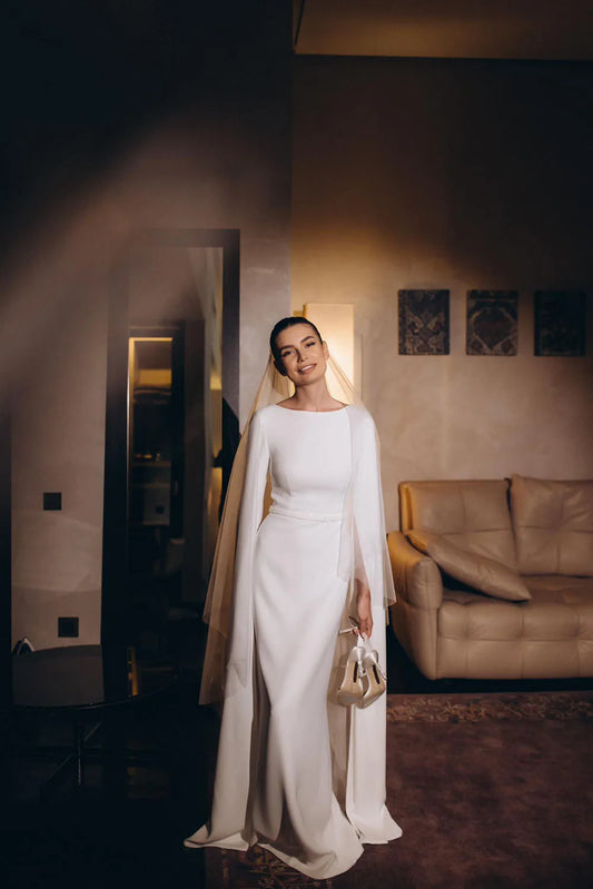 Muslim Wedding Dresses Brides Hijab Cape Sleeve Straight Modest Bride Dress vestidos de novia 2025 Wedding Gowns Customized