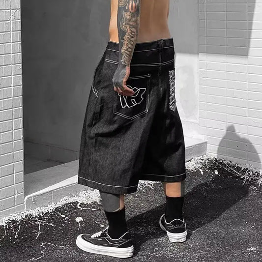 European and American fashion versatile brand slim fit elastic pants for men retro vintage denim shorts casual five quarter pant