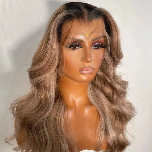 Ombre Blonde Color Transparent Color Lace Front Closure Wig Brazilian Virgin Human Hair Wig Glueless Lace Wig for Women