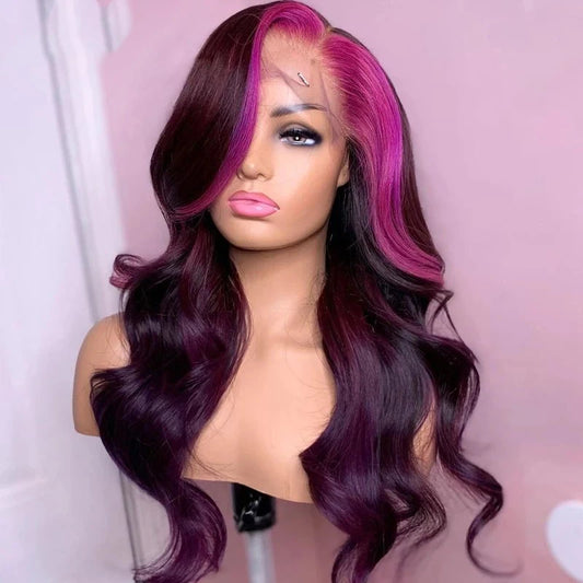 Highlight Dark Purple With Light Purple Color Body Wave Wig Brazilian Virgin Human Hair Glueless 13x4 Lace Wig for Women