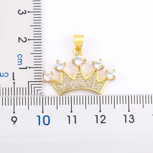 Nidin New Fashion Crown Shape Pendant Collar Gold Color Chain Choker Shiny Zircon Necklace for Women Man Jewelry Party Gifts