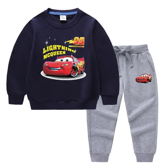 Potdemiel Children's Sets Spring and Autumn Lightning McQueen Printed Clothes Boys Cotton Kids Sweatshirts + Trousers Suits