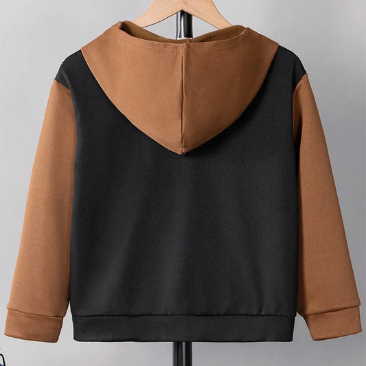 Autumn And Winter Boys Cute Cold And Warm Block Color Hooded Zipper Hoodie Coat Daily Leisure Birthday Party Clothing Clothing