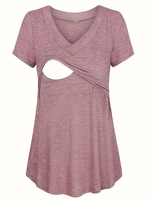 Womens Maternity Clothes Breastfeeding Clothing Short Sleeve Pregnant Clothes Pleated Side Open Pregnancy T-Shirt Top