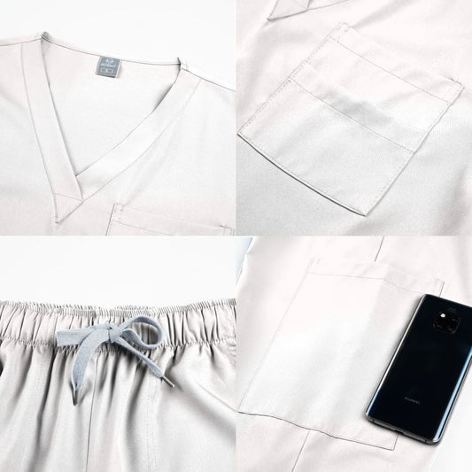 • Button Closure and waist retraction Scrub Set Medical Uniforms Nurse Clothes Women Round Neck Surgical Workwear Pair Dental Suit