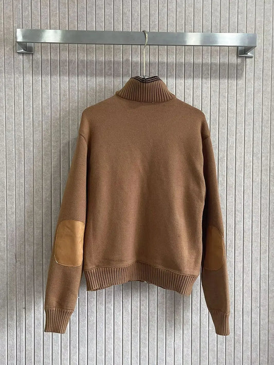 25 Autumn stand-up collar jacket for women, a trendy new high street brown long-sleeved zipper jacket