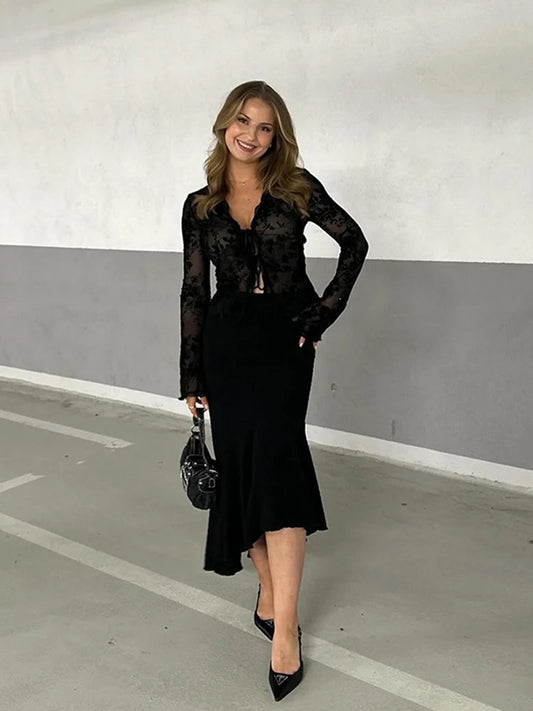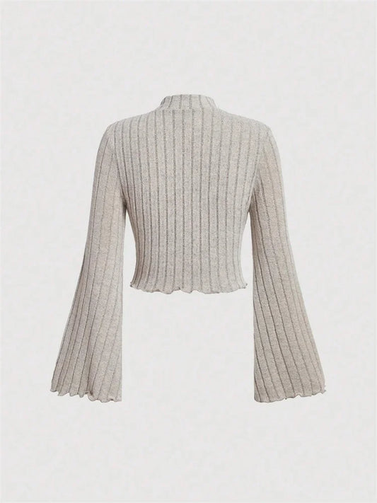 Women Flare Long Sleeve Mock Neck Rib-knit Crop Top Cropped Blouse Spring Fall 2024 Casual Slim Fit T-shirt Tees Y2K Clothes