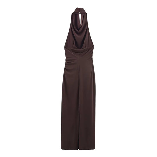 2025 summer new women's clothing casual fashion temperament simple slim design backless halter neck long dress
