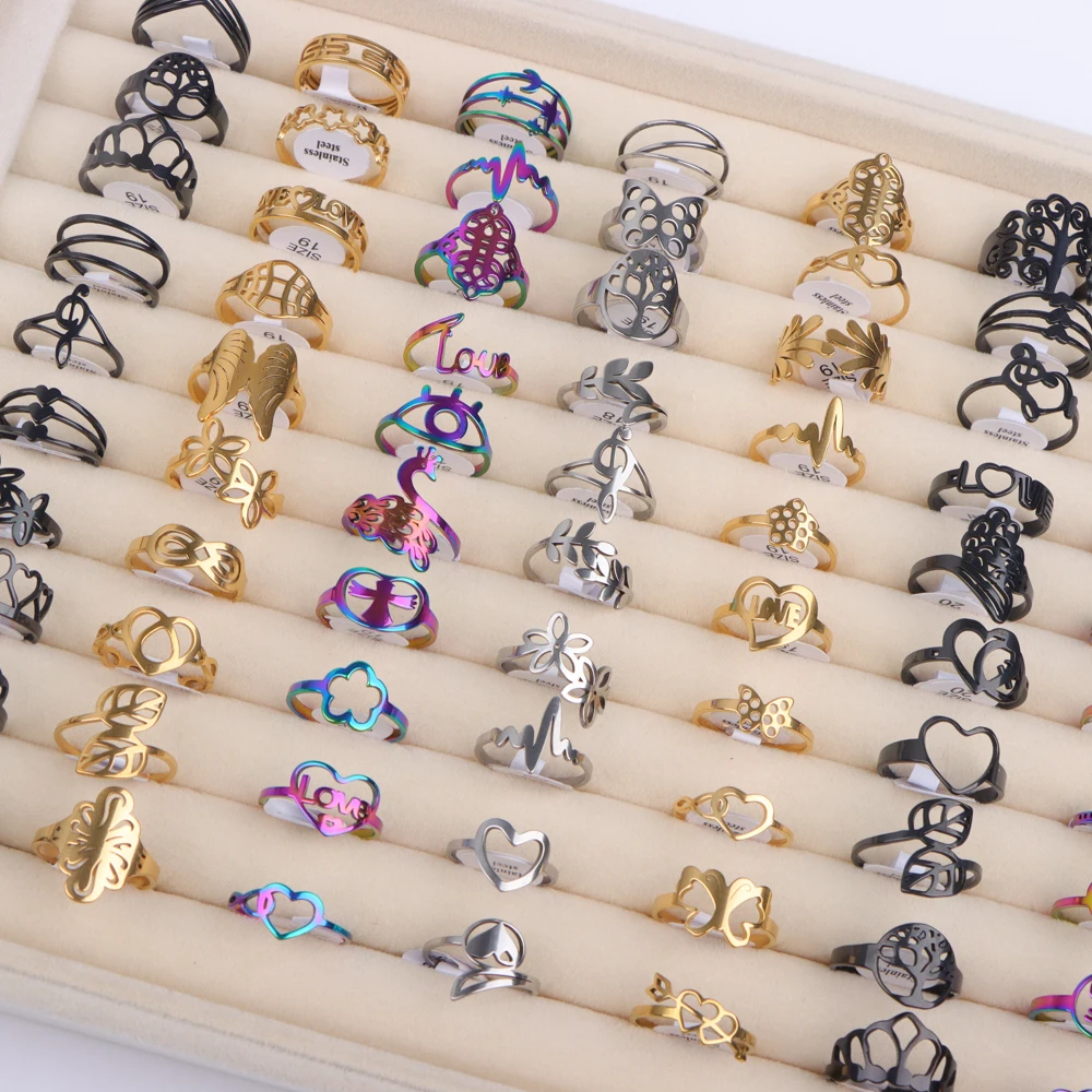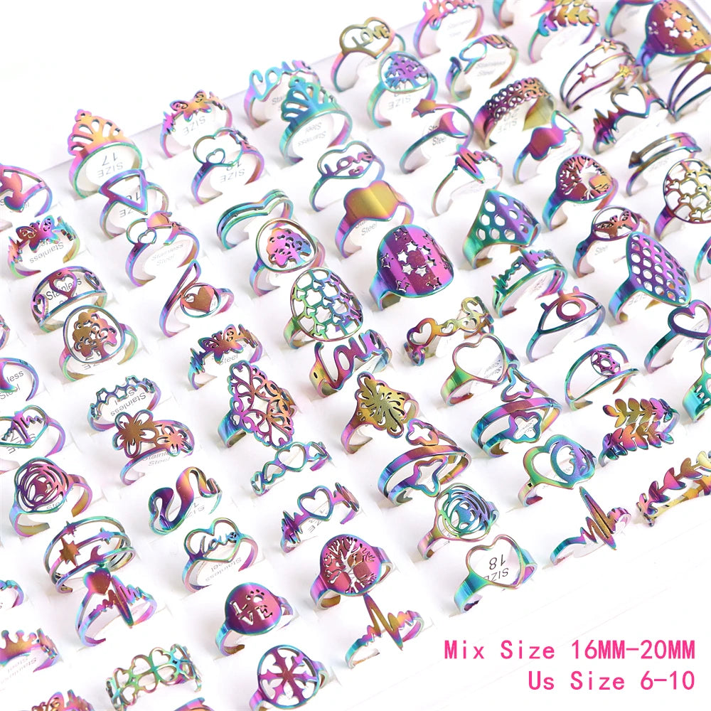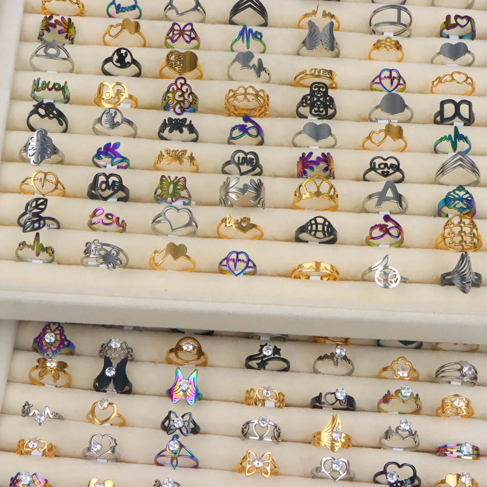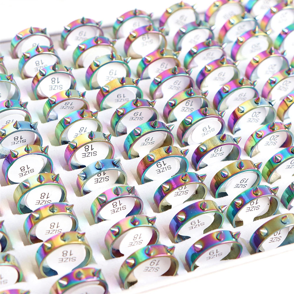 10/20 Pcs/Lot Fashion Multi Style Stainless Steel Jewelry Rings Zircon Crystal Spinner 5 Colors Punk Spikes For Womens Mens Gift