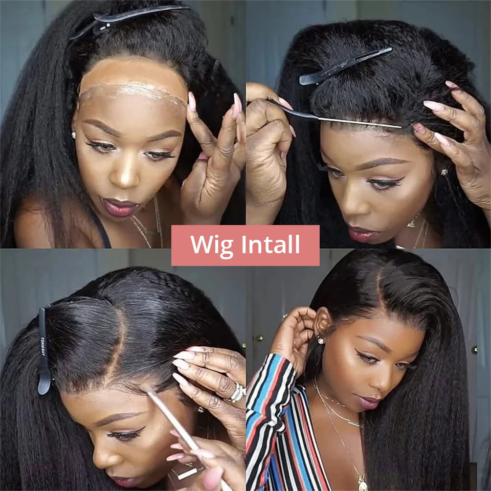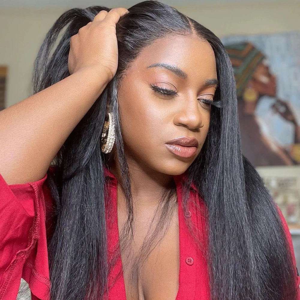 13x6 Kinky Straight Lace Front Human Hair Wig With Kinky Edges Baby Hair 360 Transparent Lace Yaki Straight Human Hair Wigs