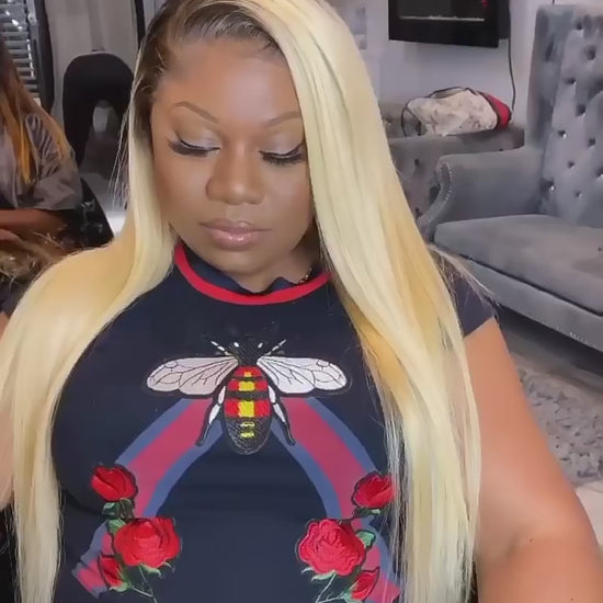 1B 613 Honey Blonde Color Lace Front Human Hair Wigs Dark Roots Remy Brazilian Straight 13x4 Lace Front Human Hair Wig for Women