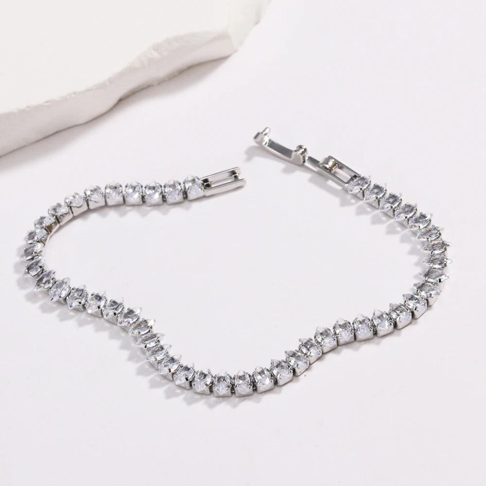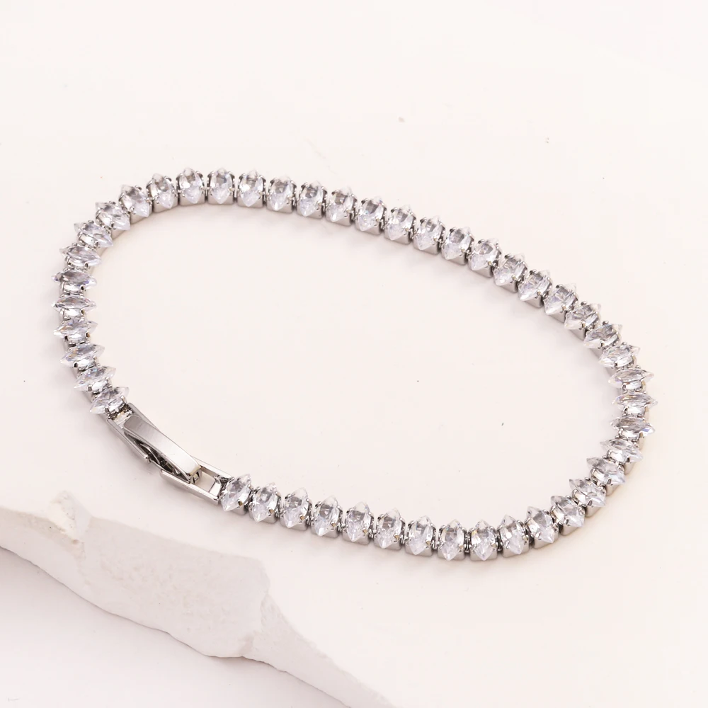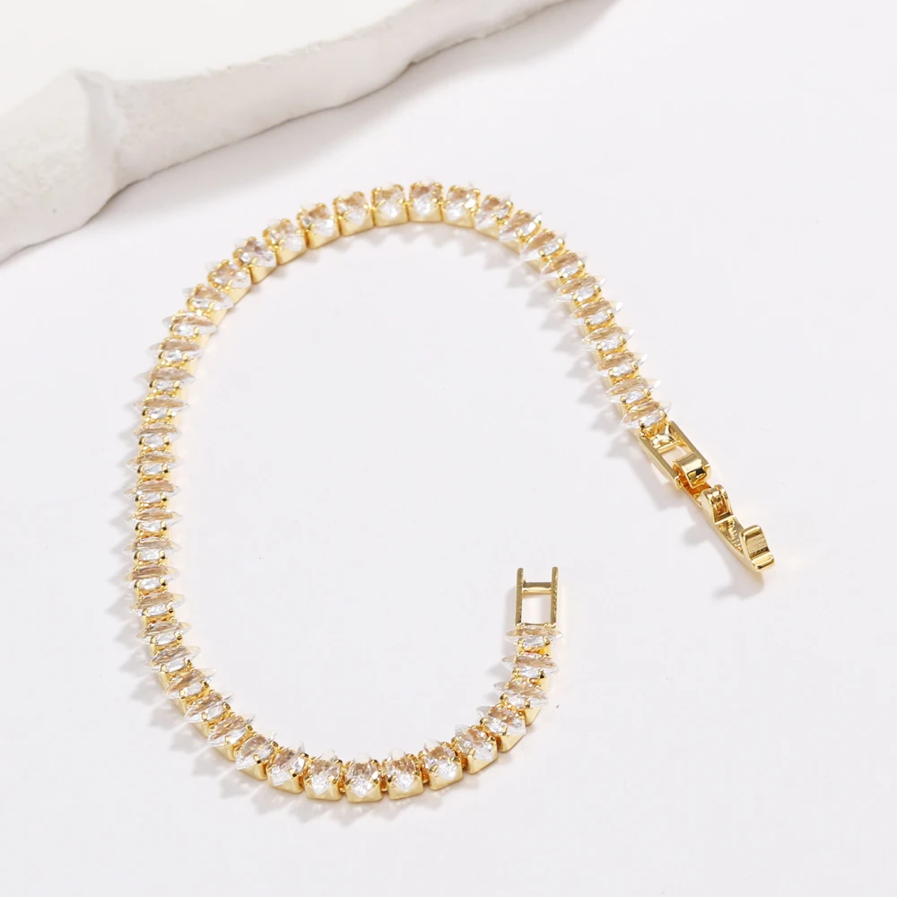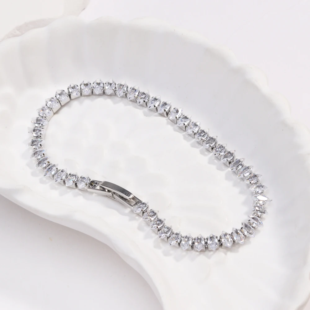 2.5*5mm New Marquise Oval Square Cut Luxury Silver Color on Hand Tennis Bracelet Bangle for Women Party Gift Jewelry