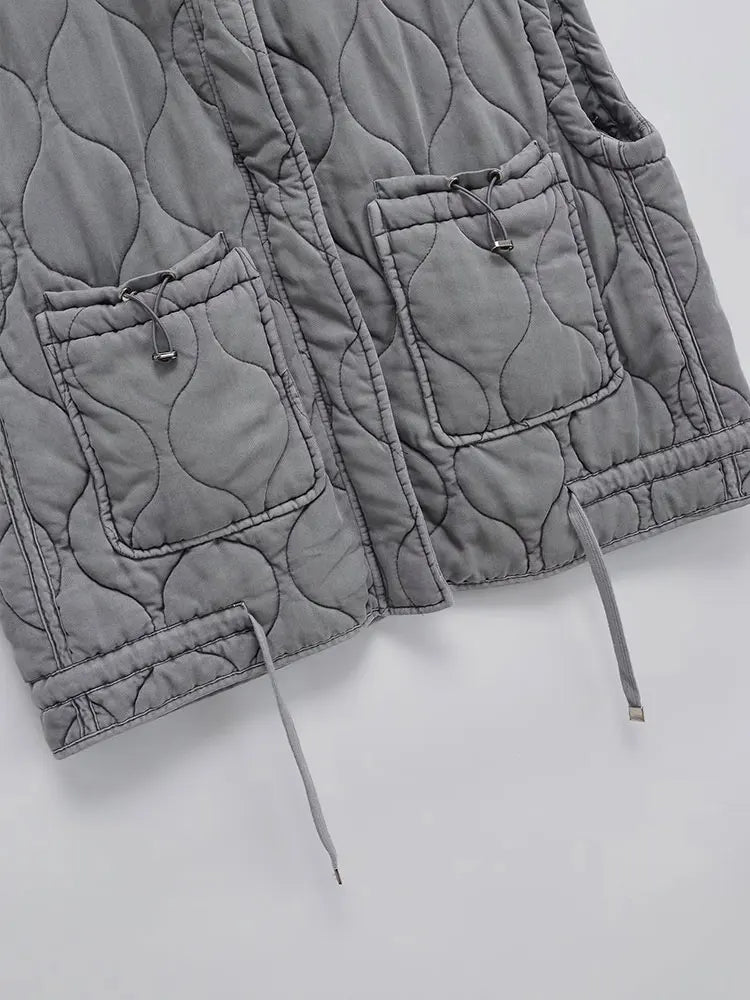 2023 Autumn Winter Fashion Washing Waistcoat Vintage Sleeveless Female Outerwear Chic Vest Tank Top Women Standing Collar Light