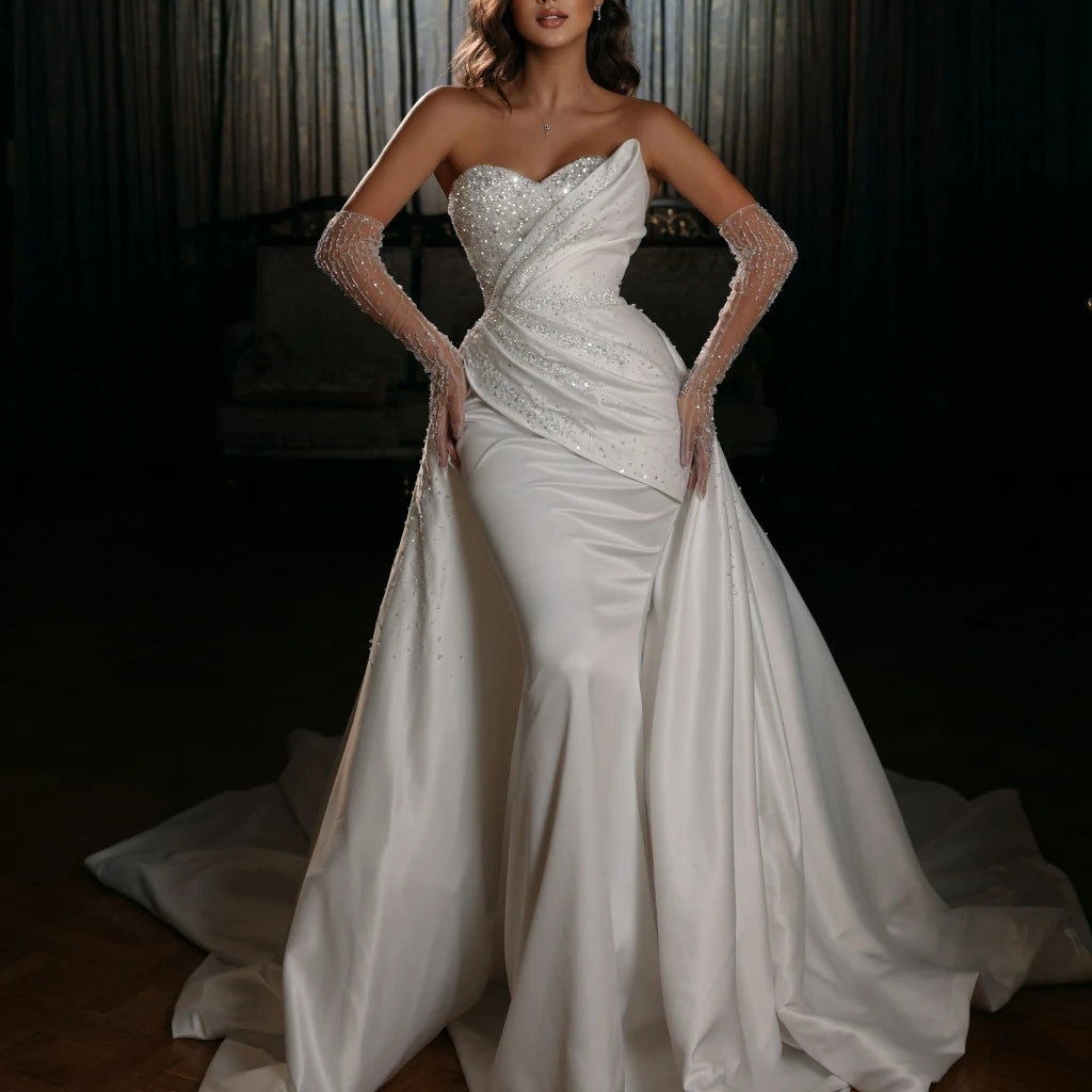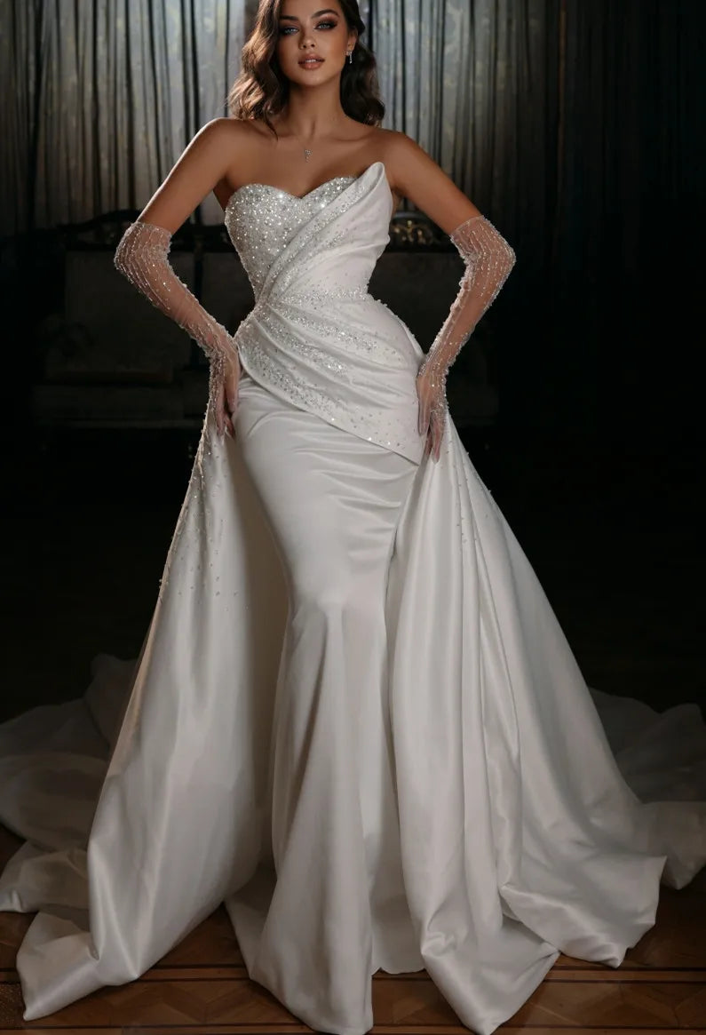 2023 Bridal Dress Mermaid Wedding Gowns Sexy Africa Bridal Wedding Dress with Detachable Train Stain Wedding Dresses