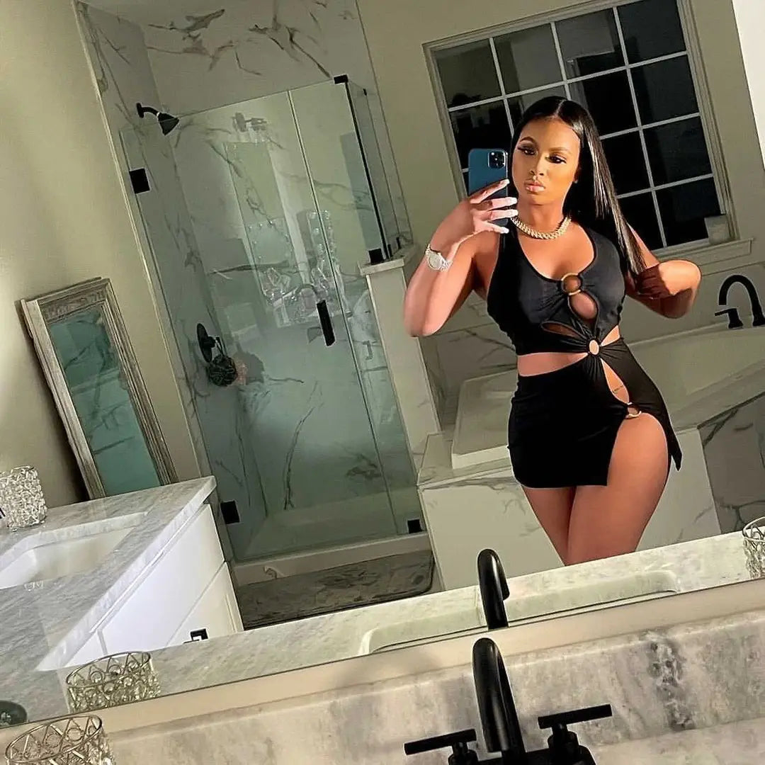 2026 Summer New Halter Dresses Sexy Slim Women's Dress Sleeveless Backless High Split Elegant Dres Party Club Hollow Mini Skirt