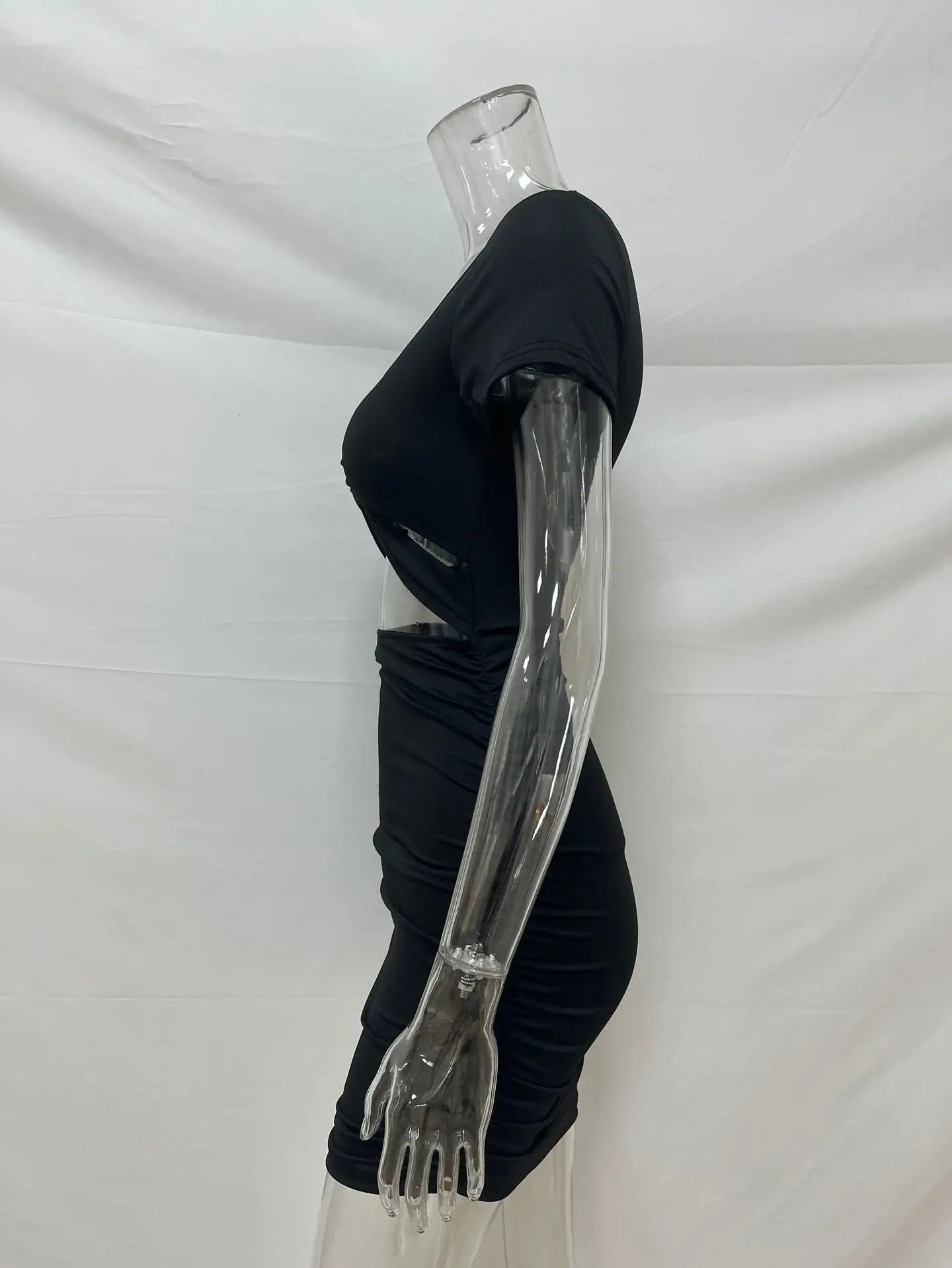 2024 cross-border women's short-sleeved summer Europe and the United States sexy V-neck Fanny pack buttock dress