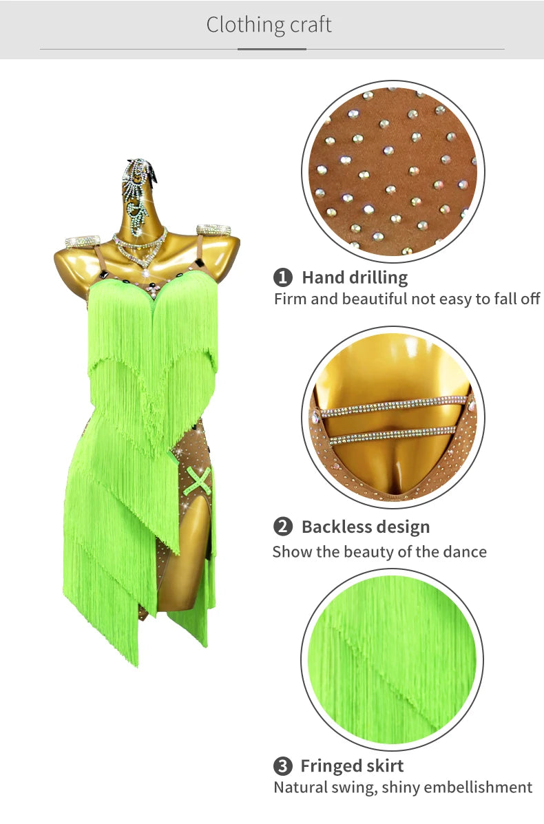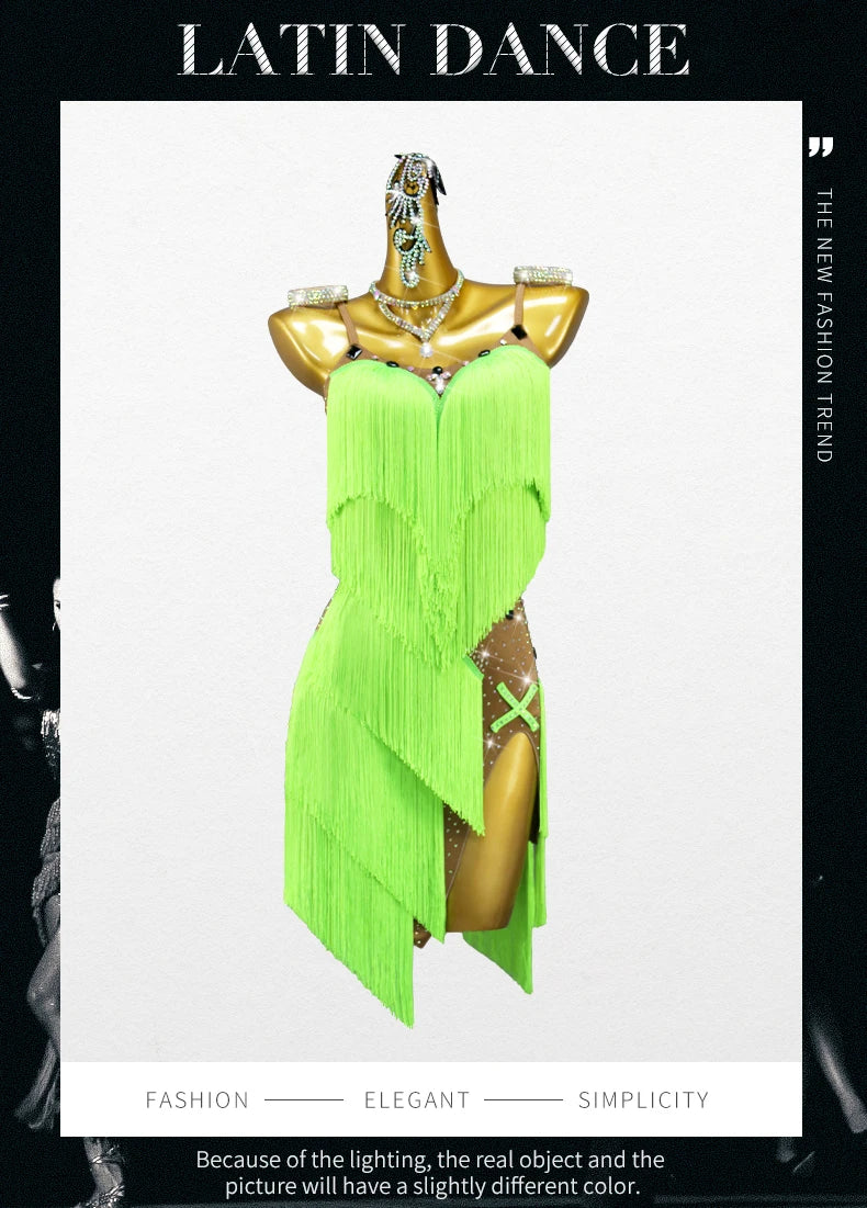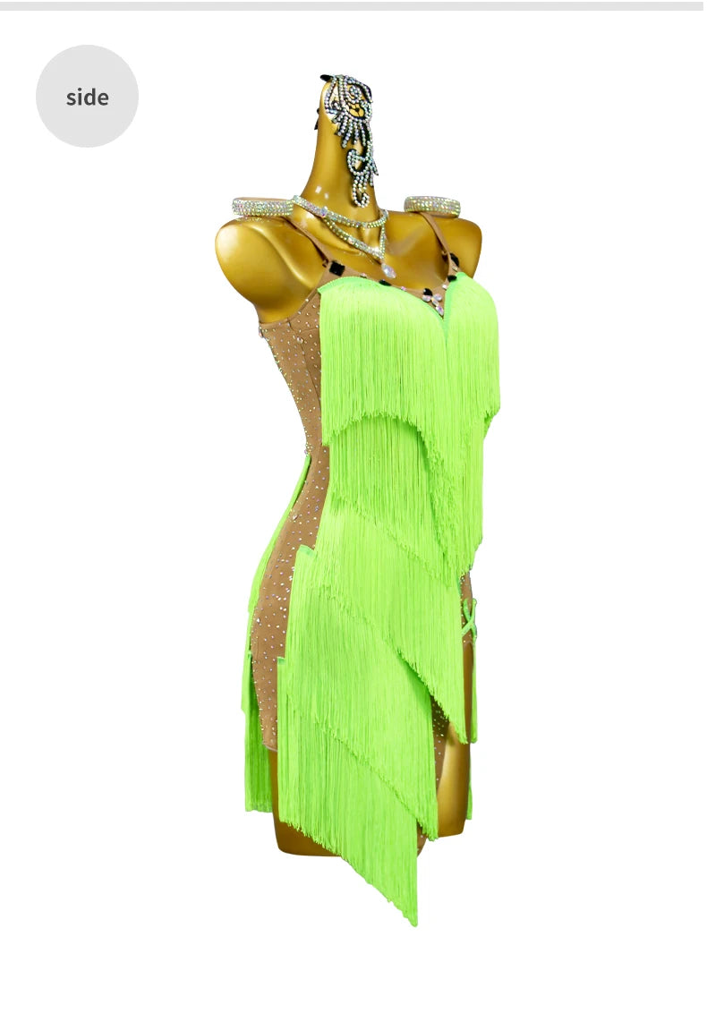 2025 New Latin Dance Dress Adult Womens Sexy Short Skirt Tassel Clothes Ballroom Practice Wear Line Suit Prom Costume Customized