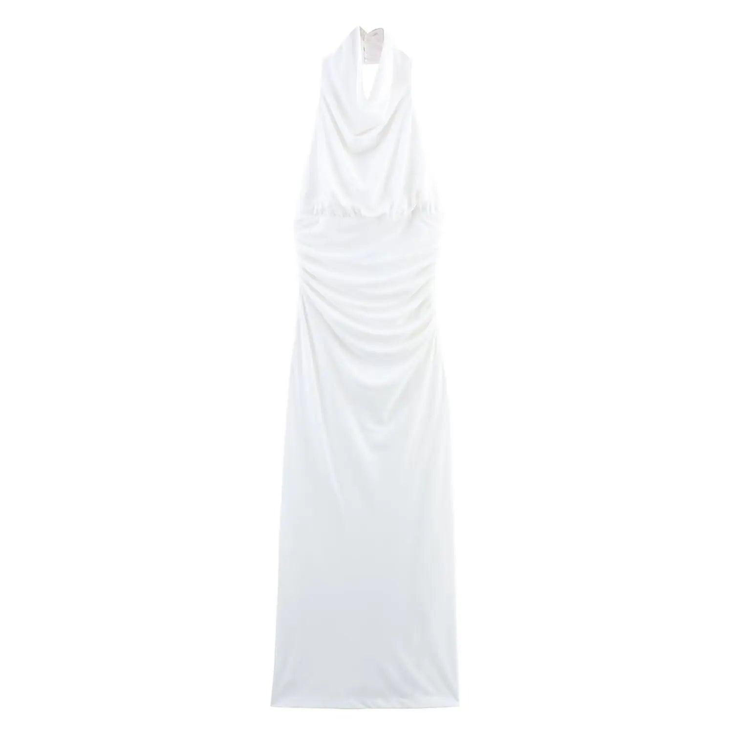 2025 summer new women's clothing casual fashion temperament simple slim design backless halter neck long dress