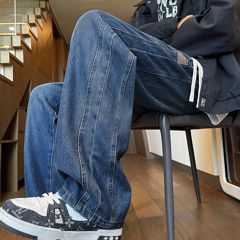 25ss Summer Vintage 190cm Men's Super long Pants 115cm Elastic Waist Straight Leg Breathable Drape Sportswear Casual Pants