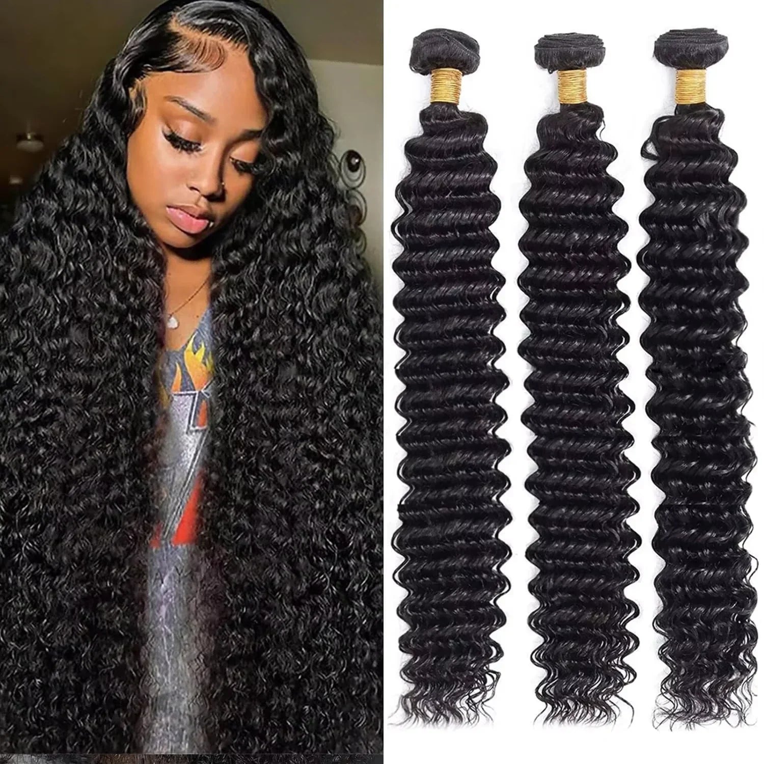 30 Inch Deep Wave 4PCs Bundles Deal Malaysian Human Hair Weave Bundles 100% Virgin Deep Water Curly Bundles Extensions Tissage