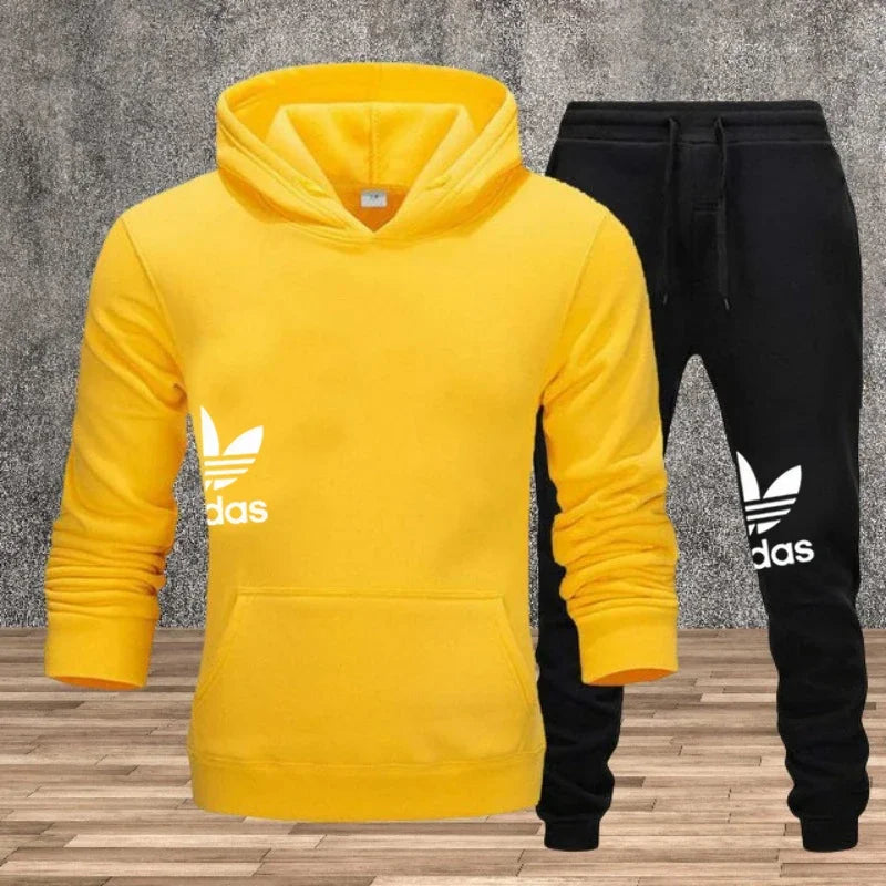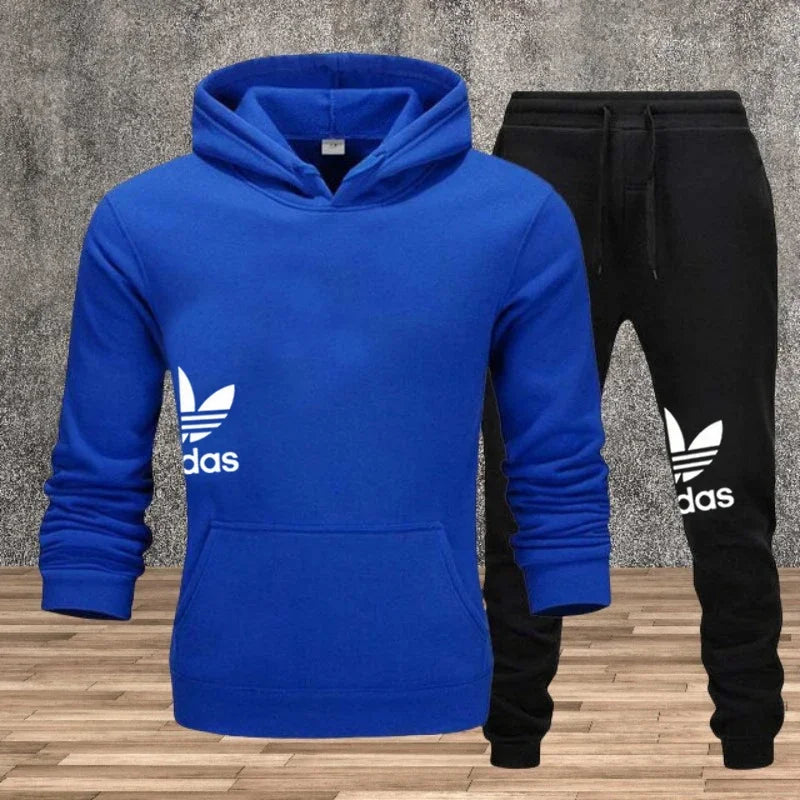 Autumn and winter hooded sweatshirt, pullover and casual pants fitness two-piece men's fashionable jogging sports set