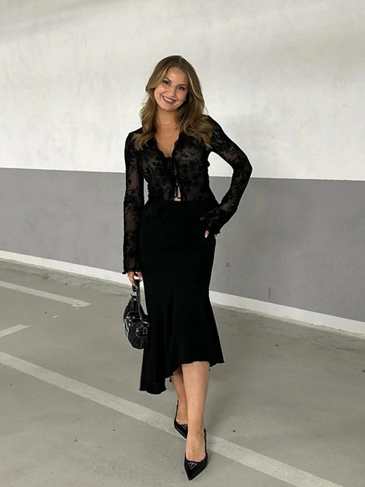 Autumn New Fashionable Chiffon Slim Fit Ruffle Trumpet Sleeve Shirt for Women