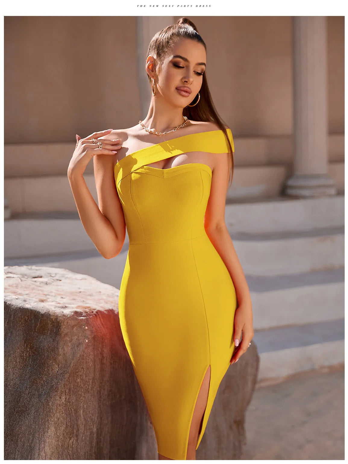 Bandage Dress Women Elegant Black One Shoulder Strapless Celebrity Runway Party Dress White Blue Split Party Pink Evening Dresse