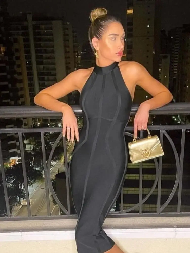 BEAUKEY 2026 Sexy Women White Turtleneck Bandage Dress Tank Runway Elastic Dress Party Black Bodycon Vestidos