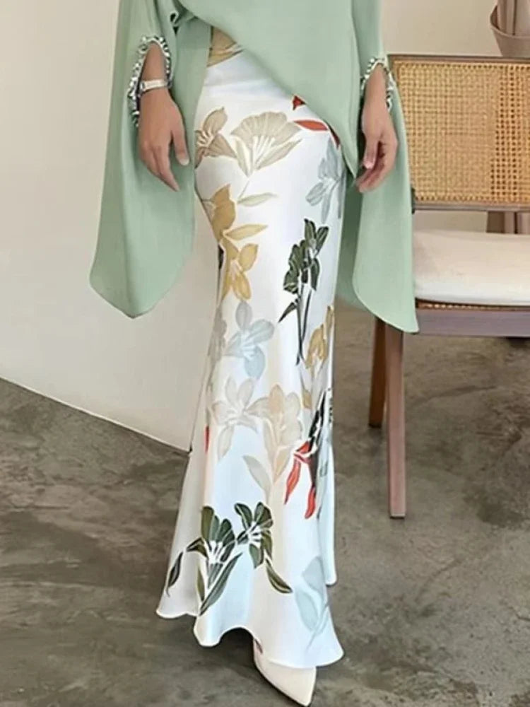 Beautyblue Elegant Floral Printed Skirt Women's Fishtail Skirts 2026 New High Waisted Skinny Vintage England Style Pencil Skirt