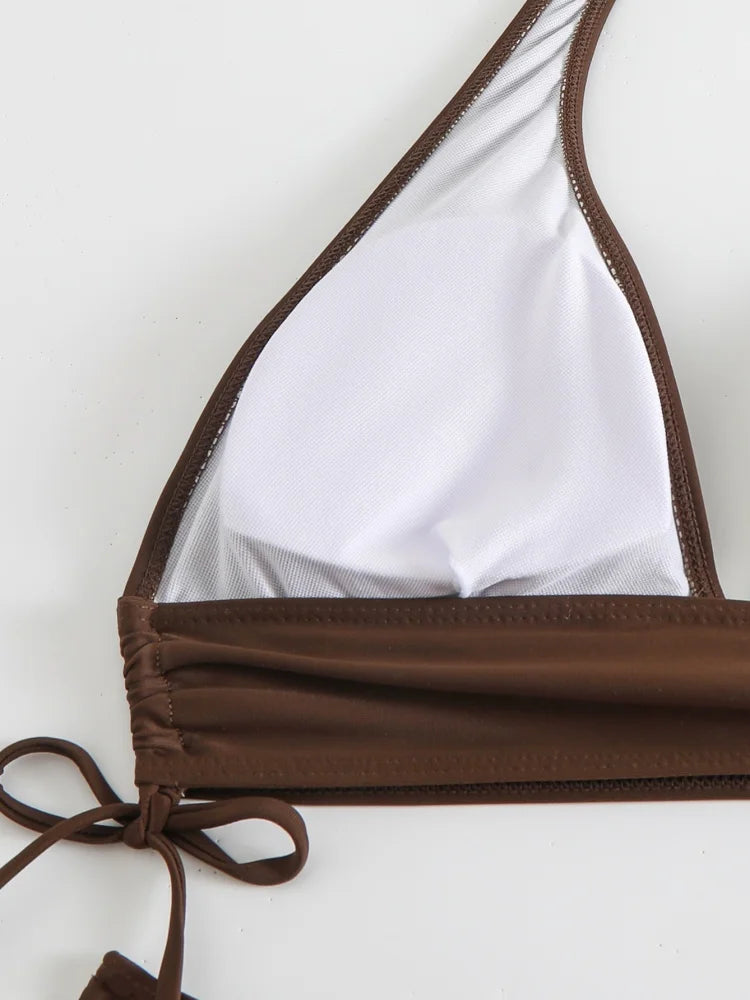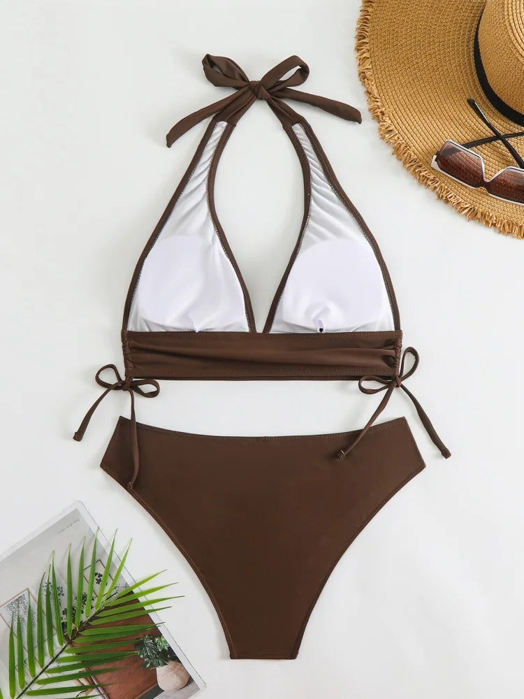 Bikini Women Swimsuit 2025 New Solid Halter V Neck Bikinis Set Sexy High Waist Swimwear Summer Beachwear Bathing Suit For Female
