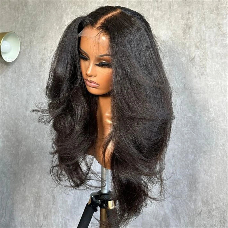 Black 180Density Soft Kinky Yaki Wave 26Inch Long Curly Lace Front Wig For Black Women Baby Hair Preplucked Daily Glueless