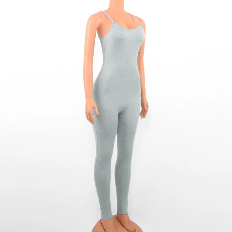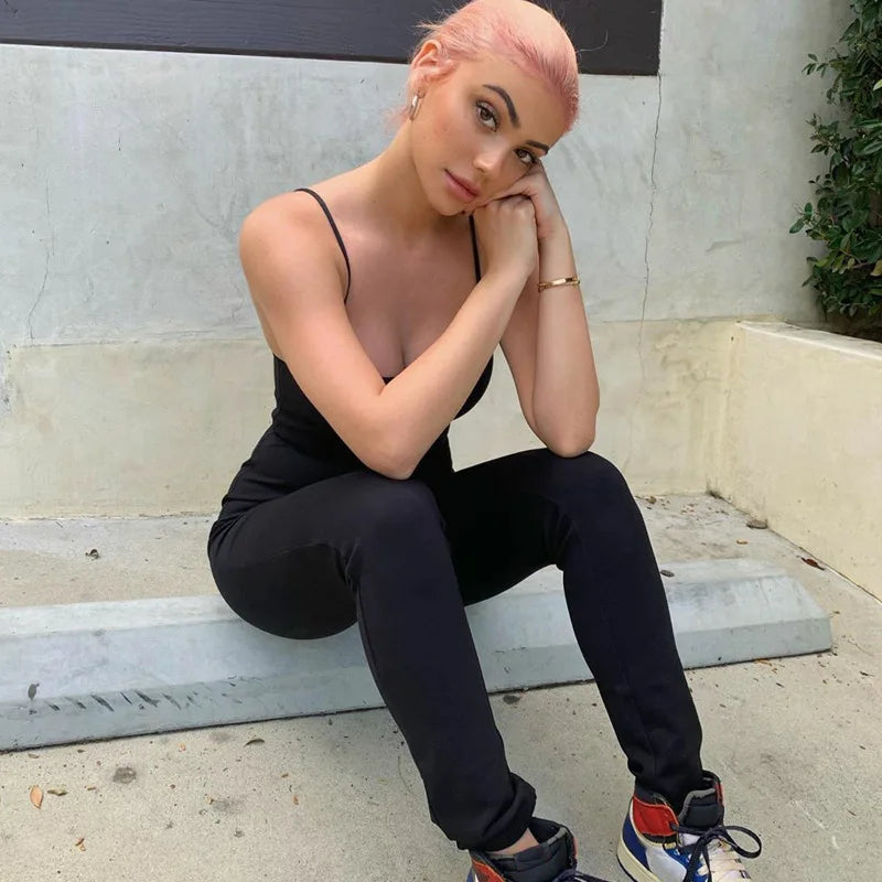 Black Sexy Jumpsuits Women Summer Sleeveless Rompers Spaghetti Strap Backless Casual Bodycon Skinny Sports Fashion Streetwear
