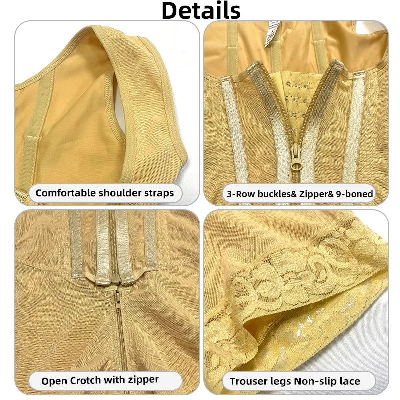Body Shaper Women Colombian Fajas Shapewear Bodysuit 9-bone High Compression Girdles Double Tummy Control Full Body Open Crotch