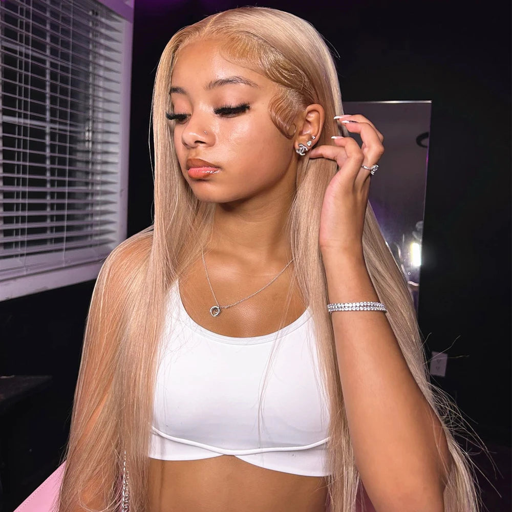 Bone Straight Honey Blonde Wig Human Hair Wigs 13x6 Hd Lace Frontal Wigs For Women 200% Density 27# Colored Lace Front Wigs