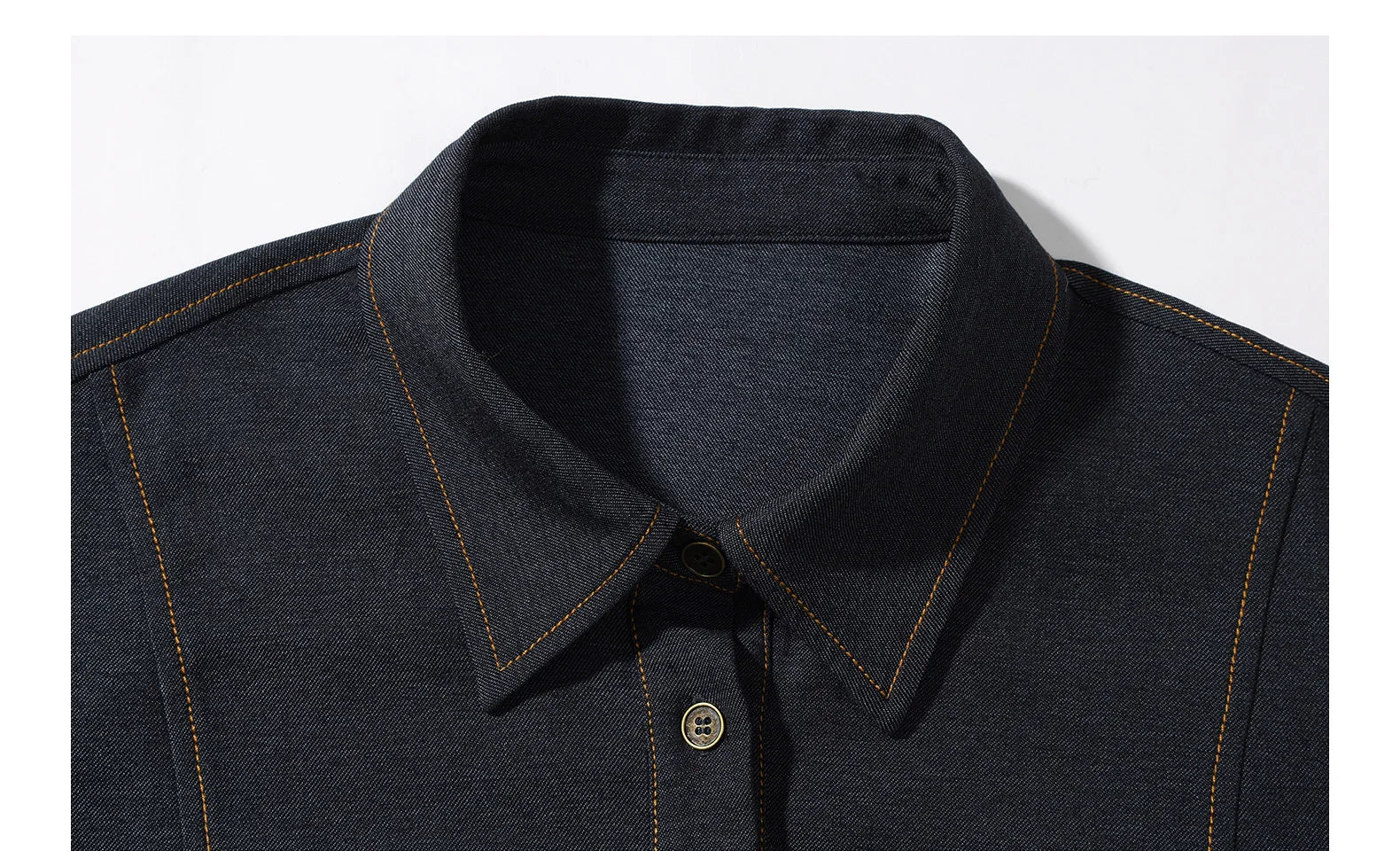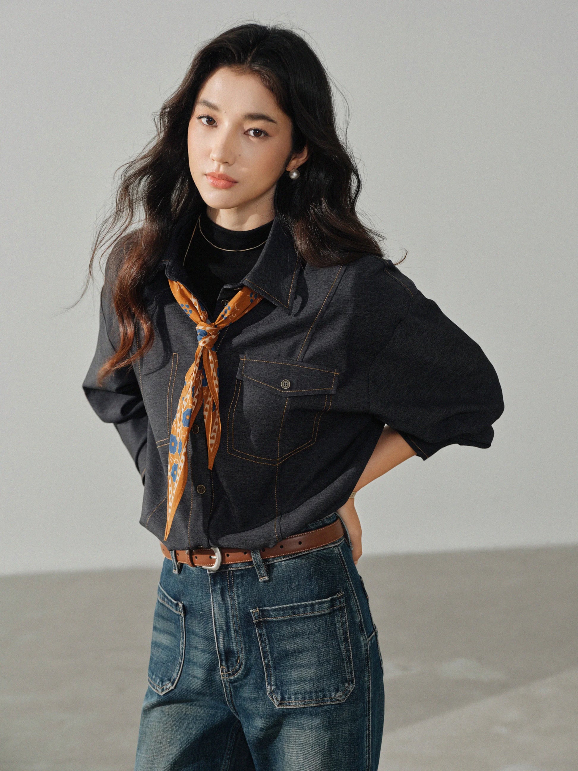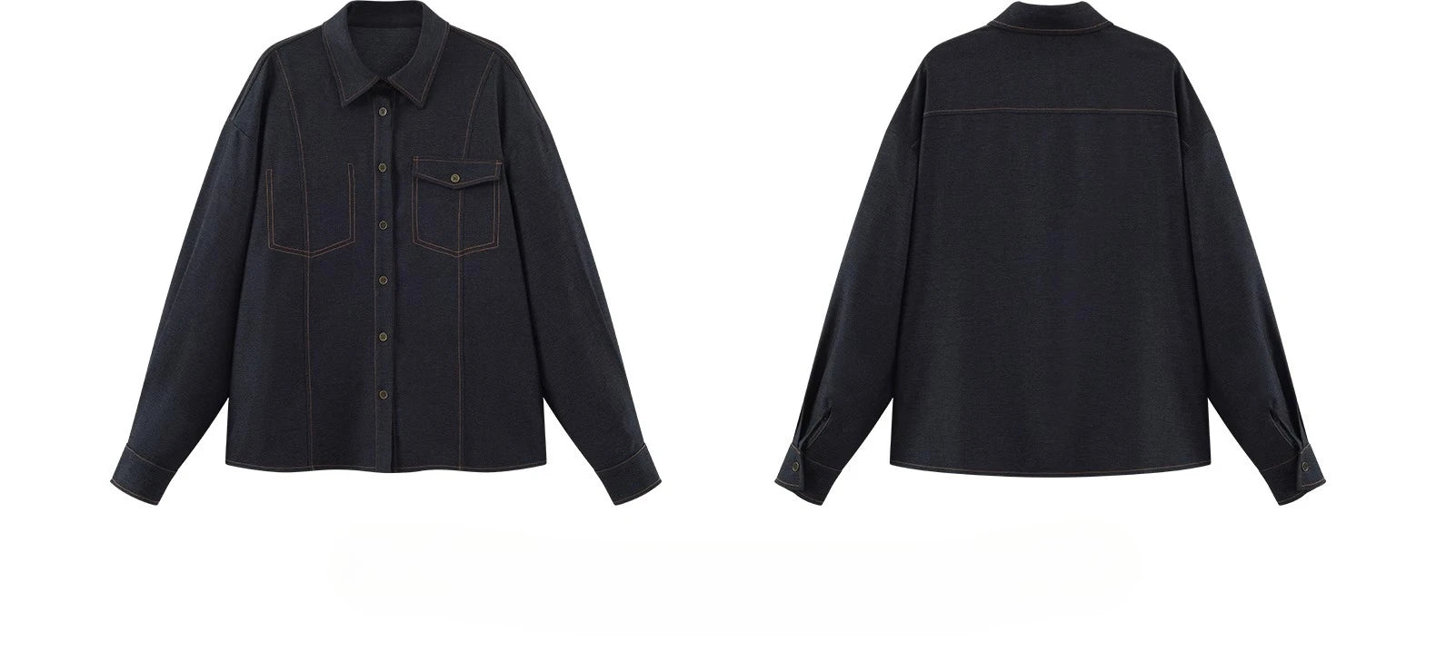 Casual Contrast Stitch Shirt Jacket Loose Long Sleeve Blouse for Women Stylish Collared Overshirt for Autumn Layered Slim Look