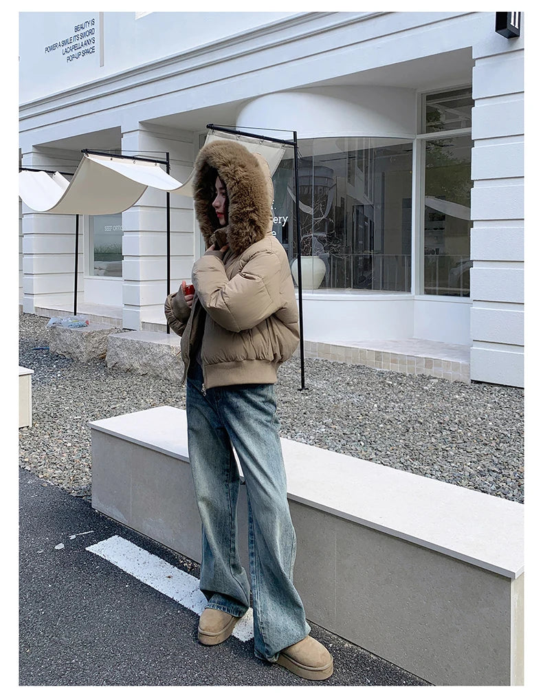 Casual Warm Fur Hooded Cropped Parkas Chic Streetwear Korean Style Down Cotton Coat Thicken Short Women's Winter 2025 Jacket