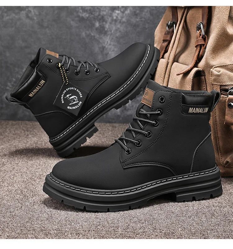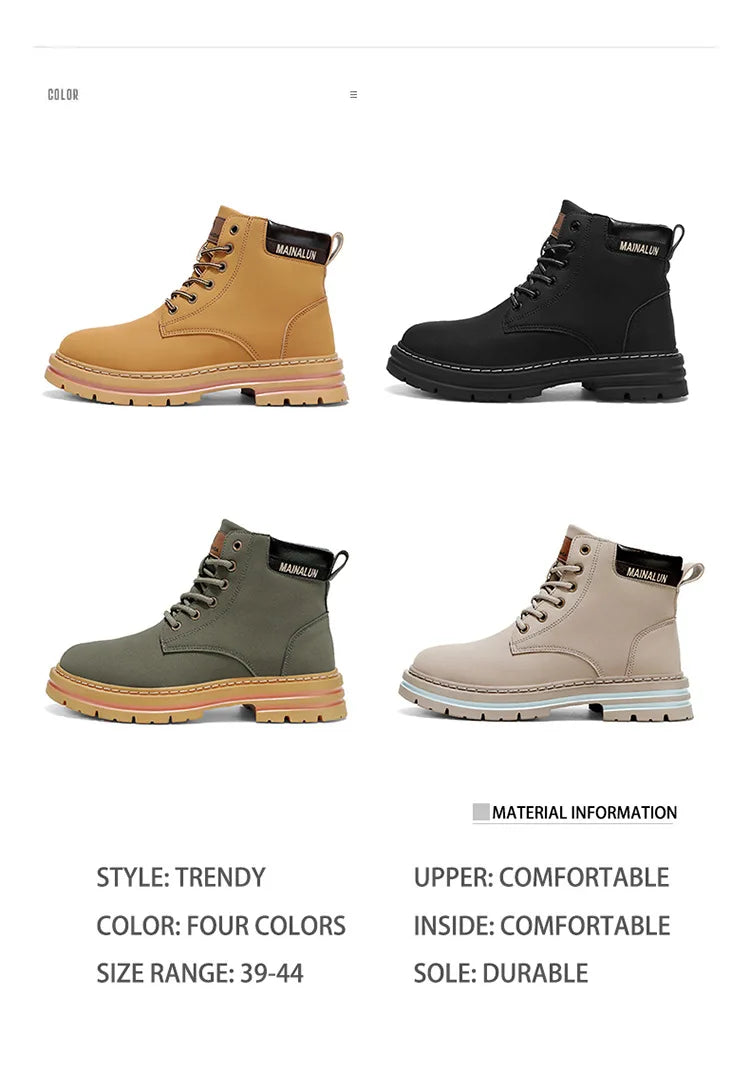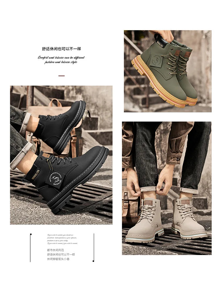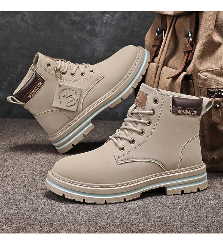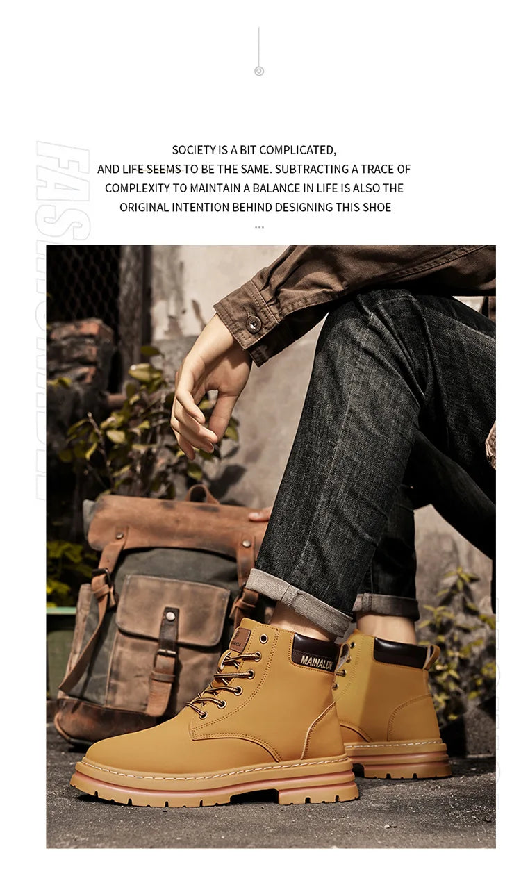 Classic Men High Top Boots High Quality Yellow Leather Boots Fashion Outdoor Sneakers Men Lace Up Non-Slip Ankle Boots for Men
