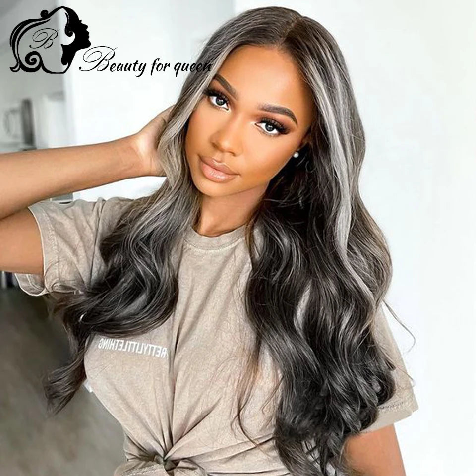 Colored Highlight White Black Body Wave Transparent 13x4 HD Lace Frontal Wigs For Women Brazilian Human Hair Wig 180 Density
