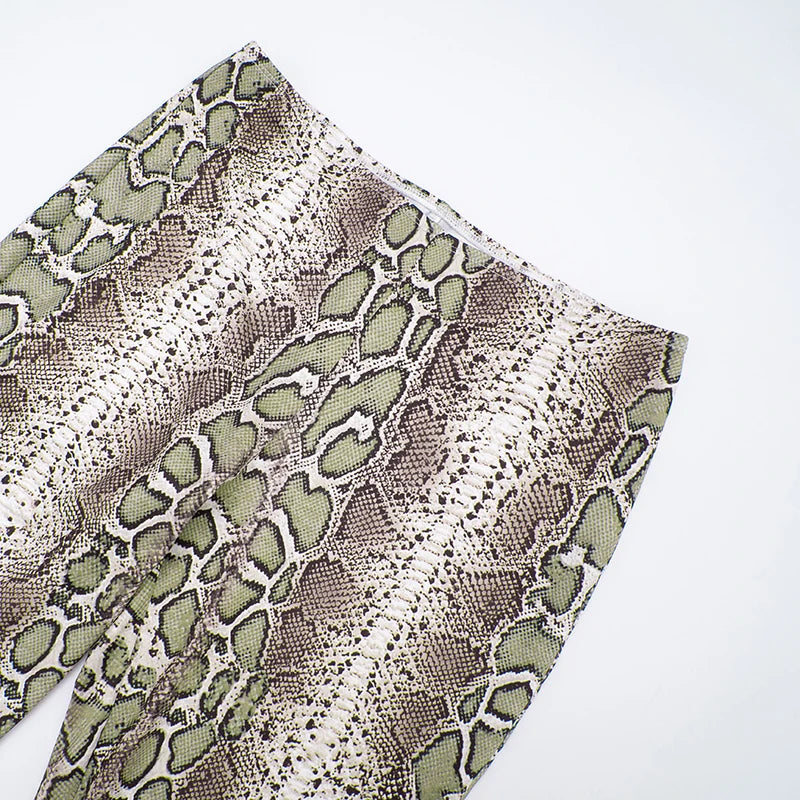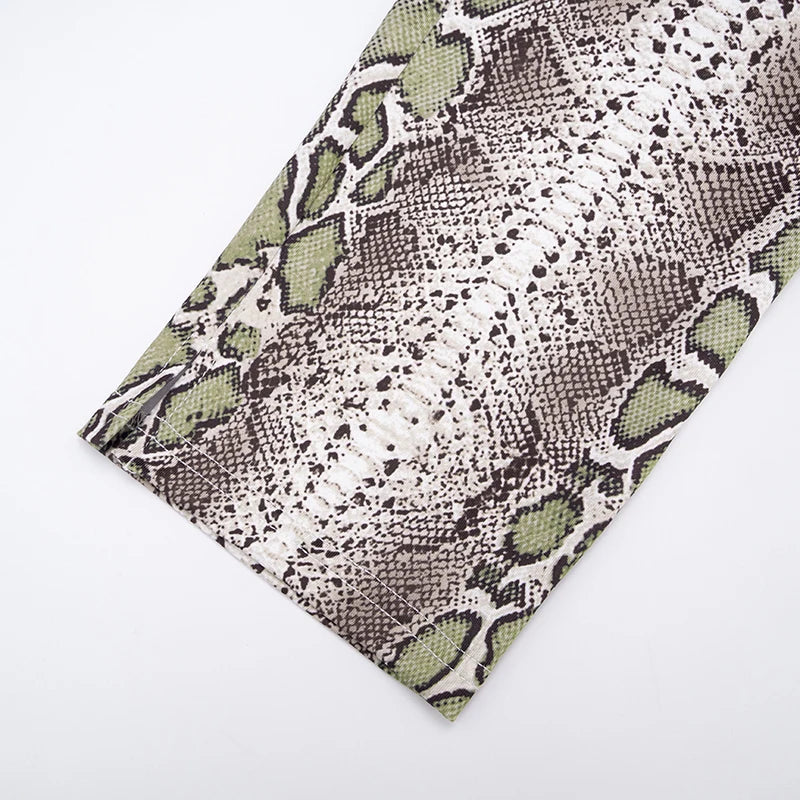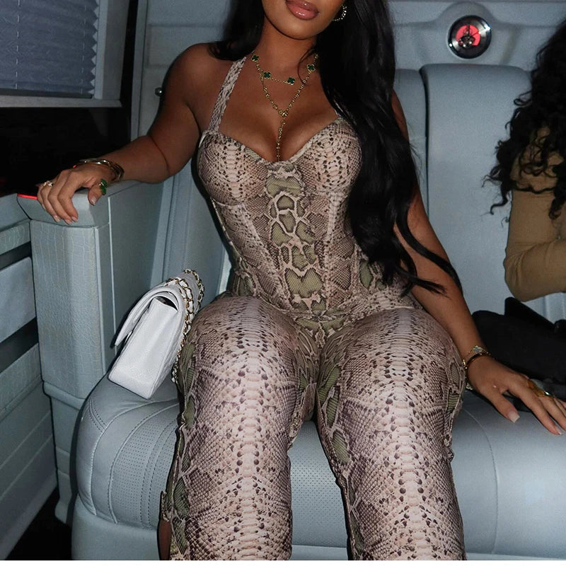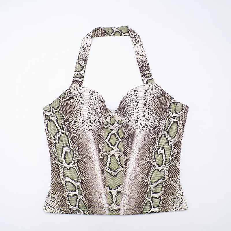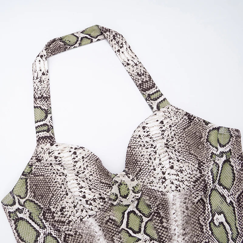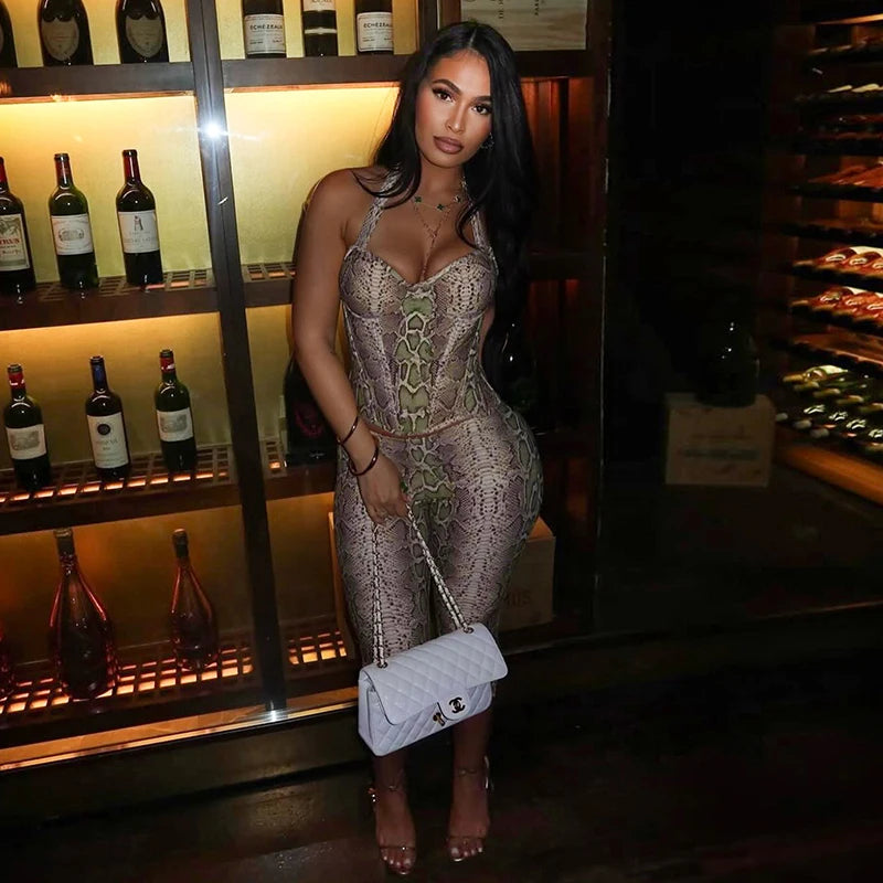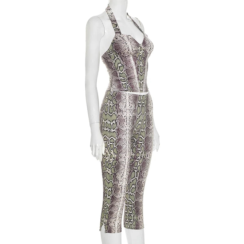 CUTENOVA Fall New Arrival Women Snake Print Hanging Neck Sleeveless Tank Top & Slim-Fit Seven Points Pants Set Street Chic Suit